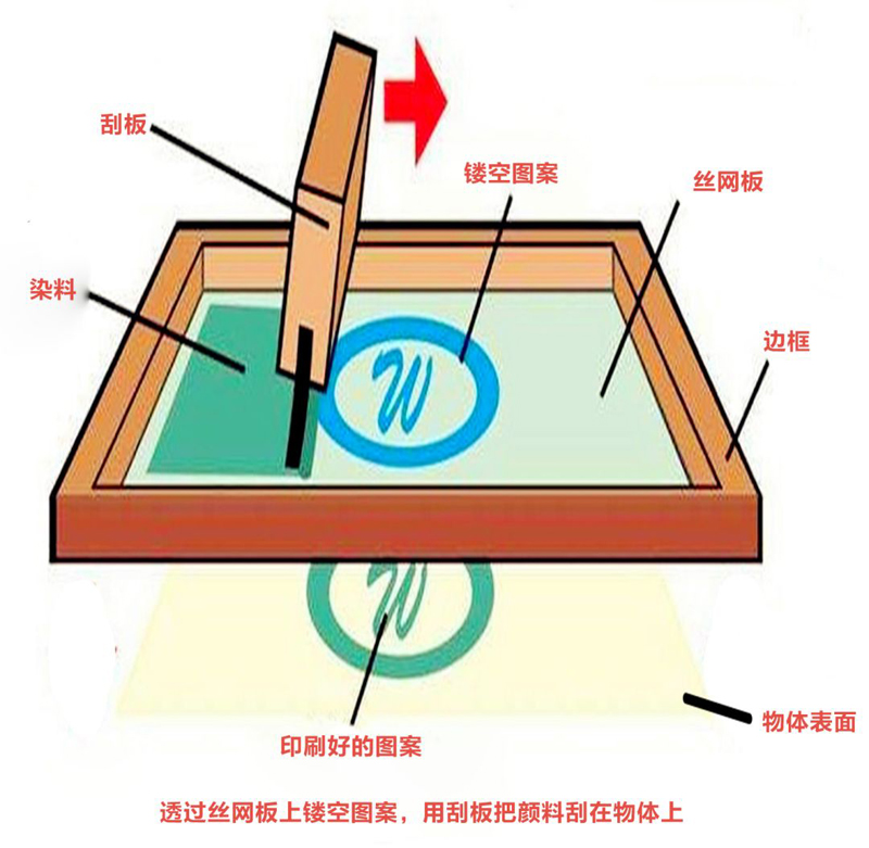 絲網(wǎng)印刷是將絲織物、合成纖維織物或金屬絲網(wǎng)繃 在網(wǎng)框上,采用手工刻漆膜或光化學(xué)制版的方法制作絲網(wǎng)印版?,F(xiàn)代絲網(wǎng)印刷技術(shù),則是利用感光材料通過照相制版的方法制作絲網(wǎng)印版(使絲網(wǎng)印版上圖文部分的絲網(wǎng)孔為通孔,而非圖文部分的絲網(wǎng)孔被堵住)油畫、版畫、招貼畫、名片、裝幀封面、商品包裝、商品標(biāo)牌、印染紡織品、玻璃及金屬等平面載體等。