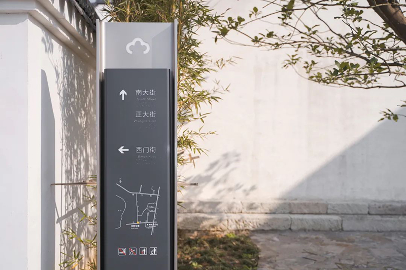 該導(dǎo)視系統(tǒng)的設(shè)計(jì)風(fēng)格較為簡(jiǎn)潔,注重功能性,這對(duì)于工藝有著極高的要求,需要以工藝去表現(xiàn)出質(zhì)感;主要牌體均采用不銹鋼板,在工藝上要求不銹鋼板表面完全平整,誤差肉眼不可見,以確保在日光投射下,表面無凹凸反光,保證導(dǎo)視牌的質(zhì)感;同時(shí),在鋼板拼接時(shí),注意各個(gè)折角的平滑度,不留下坑坑洼洼的痕跡;牌體表面采用絲印工藝,信息清晰,經(jīng)久耐用;在安裝過程中做到無痕安裝,接觸面不留縫隙,做到完美落地。
